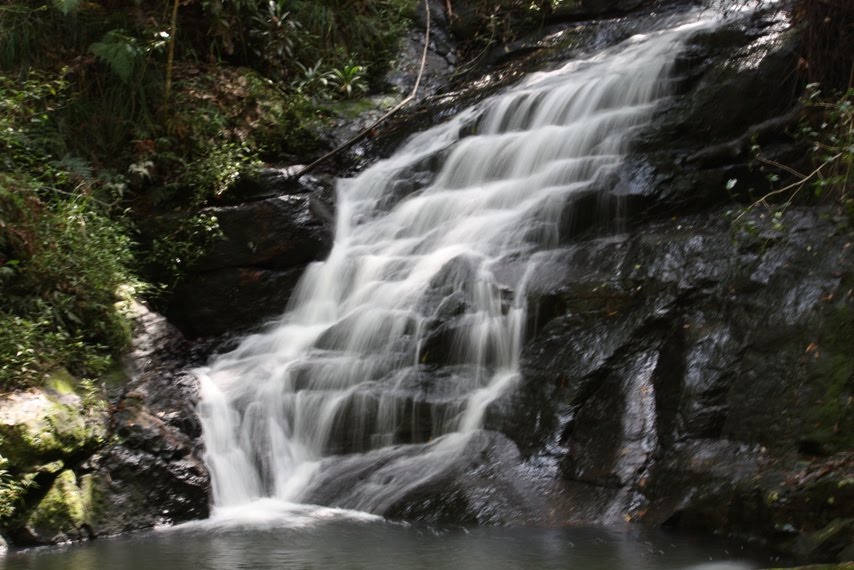 Skene Creek drops 90 metres here, and it took four shots, one on top of the other, to fit in all of Kondalilla Falls from top to bottom. This is the top shot, as taken from the base of the falls. It was one of those blue-sky, good-to-be-alive days.