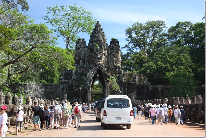 Five grand entrances allowed access to the capital city, each gate crowned with four giant faces and framed by elephants wading amongst lotus flowers.