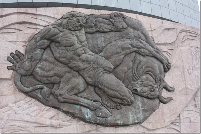 Tanziling Ridge is decorated with large relief sculptures depicting various activities of the Chinese people to harness rivers through the course of history. Another one of these sculptures depicted teams of “trackers” - (strong) naked men who used to haul boats upstream through narrow sections of the gorges, by ropes tied around their waists. They were naked because their clothes were constantly wet and would chafe.